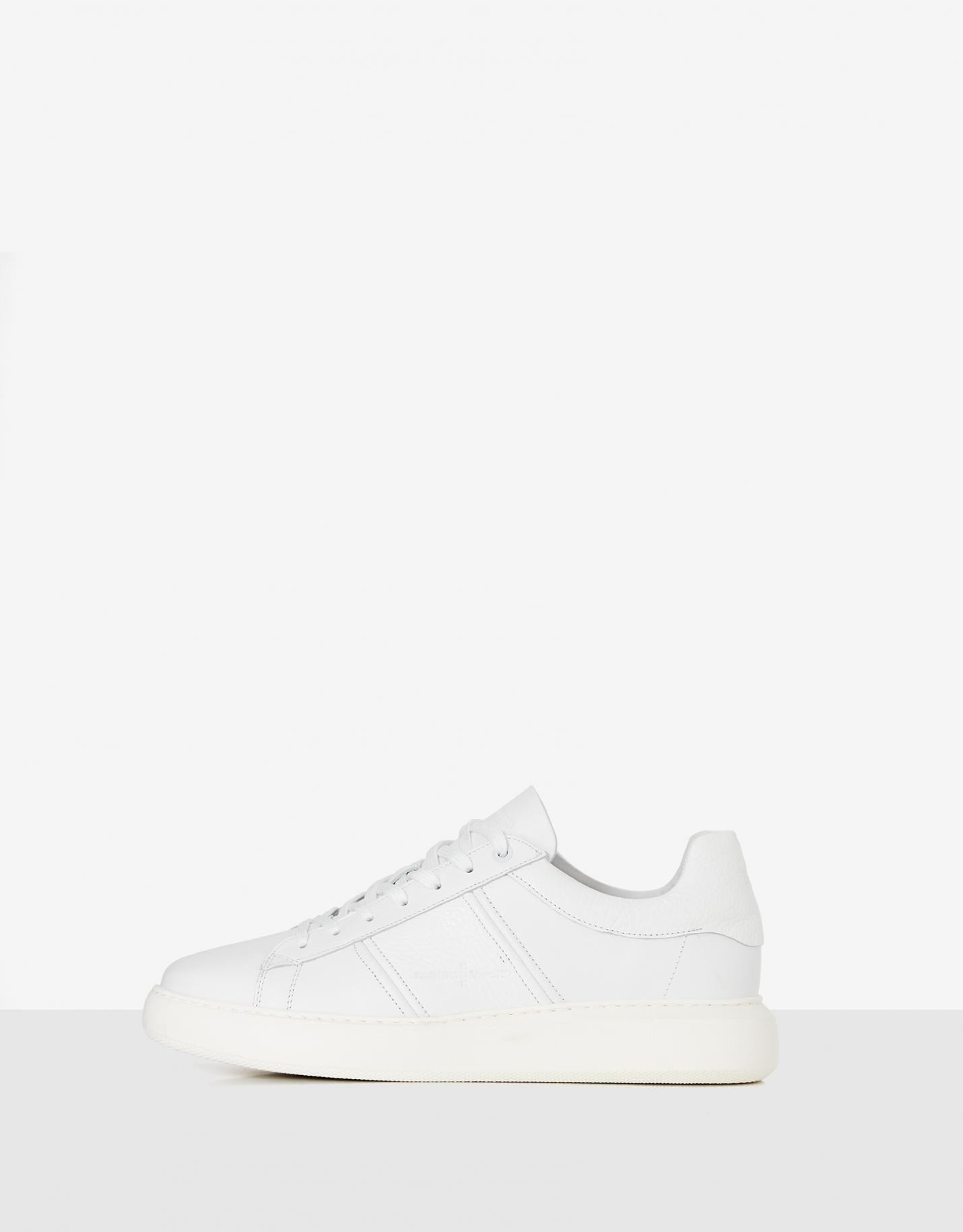 Zapatilla deportiva realizada en una combinación de pieles lisa y grano color blanco, con personaliz…